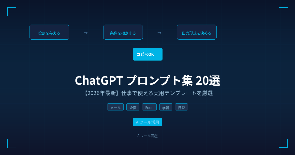 この記事では、仕事でChatGPTを毎日使っている僕が、実際に繰り返し使っているプロンプトテンプレートを20個厳選しました。コピペして[ ]内を書き換えるだけですぐに使えます。
